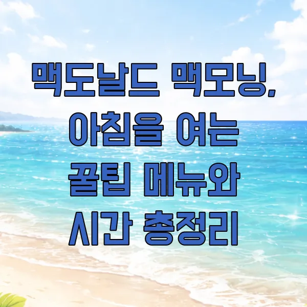 [면책 조항] 본 콘텐츠는 맥도날드 맥모닝 메뉴, 시간, 가격에 대한 일반적인 정보 제공을 목적으로 작성되었습니다. 실제 판매 정보는 매장별, 시점별로 상이할 수 있으며, 최신 정보는 맥도날드 공식 홈페이지 또는 매장을 통해 확인하시기 바랍니다. 본 정보로 인한 직접적, 간접적 손해에 대해 책임을 지지 않습니다.