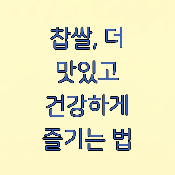 - 혈당 관리 주의: 찹쌀은 혈당을 빠르게 올릴 수 있으니, 당뇨 환자분들은 섭취량 조절에 신경 쓰는 게 좋아요.